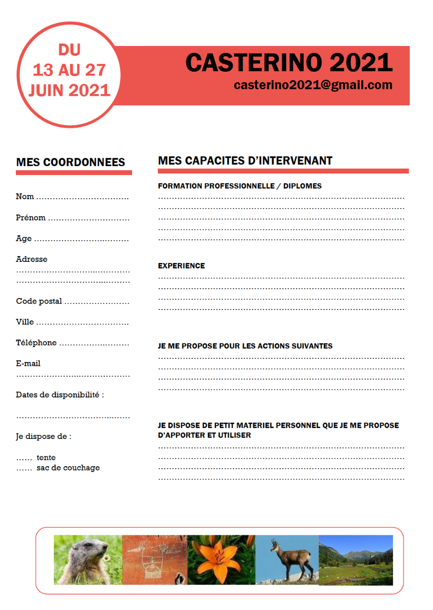 Du 13 au 27 juin prochain, Casterino propose à toute personne bénévole de venir pour la restauration du hameau. Voilà le formulaire à remplir afin de mieux organiser ces deux semaines de chantier solidaire.