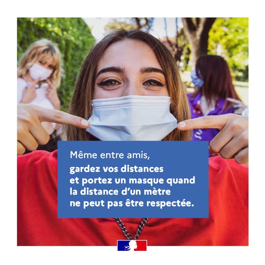 Même entre amis, gardez vos distances et portez un masque quand la distance d'un mètre ne peut pas être respectée.
