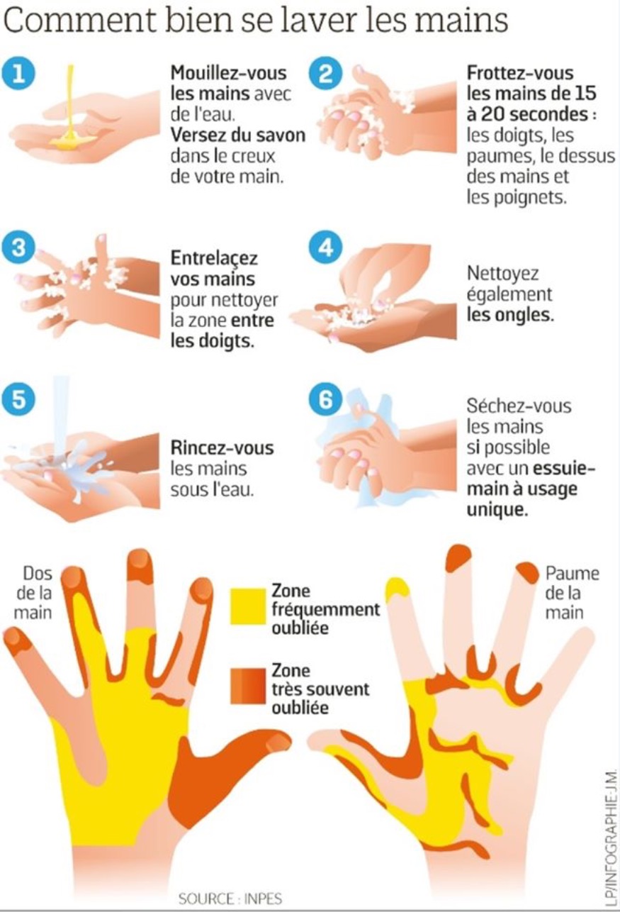 IMPORTANT : le lavage régulier des mains à l’eau savonneuse est à privilégier. Cette méthode de nettoyage est mieux adaptée et tout aussi efficace que l’usage de gel hydro-alcoolique qui peut, quant à lui, provoquer des irritations lors d’un usage répété.