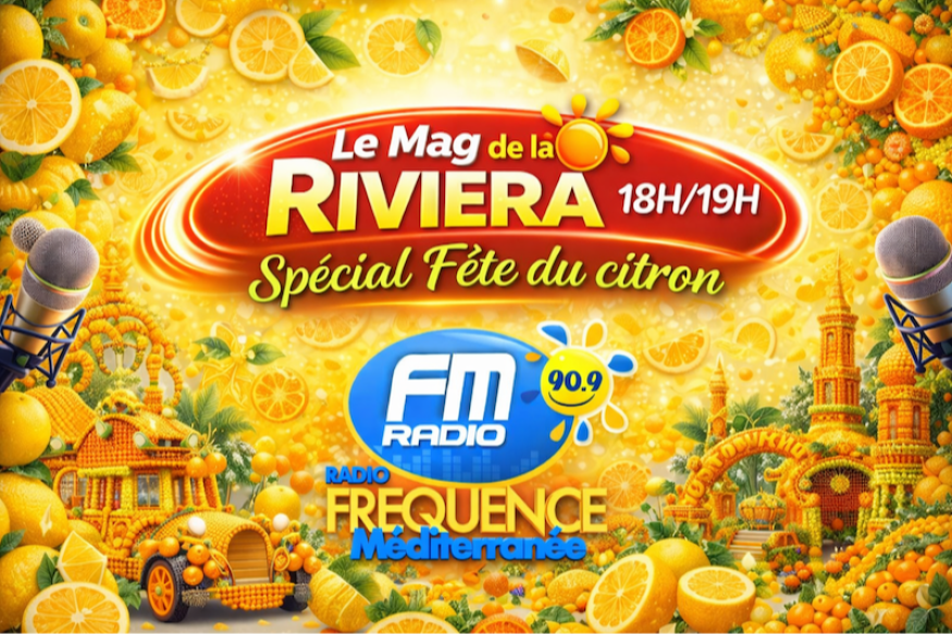 Retrouvez nous Mardi de 18H à 19H pour un " Mag de la Riviera " Spécial " Fête du Citron " . 1H00 d'infos insolites, d'anecdotes, d'infos sur la fête du Citron de Menton....