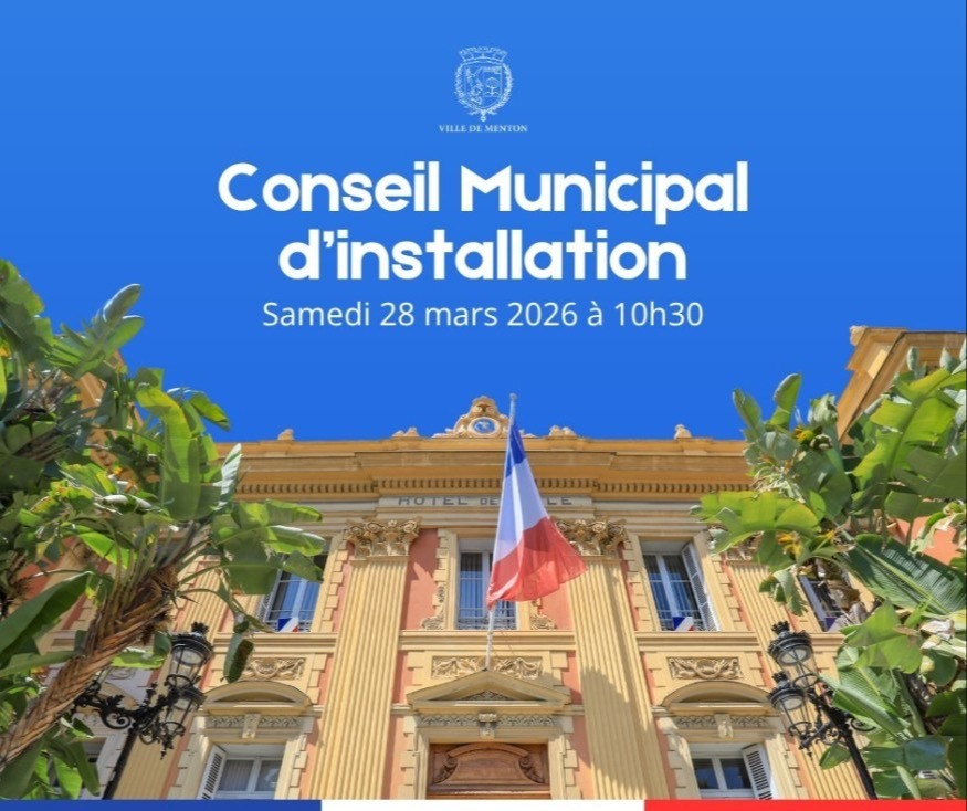 La Ville de Menton convie les habitants à assister au Conseil municipal d’installation, qui marquera officiellement le début de la nouvelle mandature, le samedi 28 mars 2026 à 10h30 à l’Hôtel de Ville (Salle du Conseil).