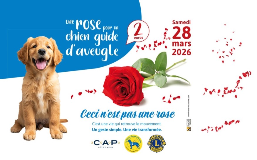 Le samedi 28 mars 2026, les centres commerciaux et galeries marchandes des Alpes- Maritimes vibreront au rythme de la solidarité ! Plus d’une centaine de bénévoles se mobiliseront pour l’opération Une Rose pour un Chien Guide, avec le soutien de David Deguine, ancien sportif de haut niveau en voile.