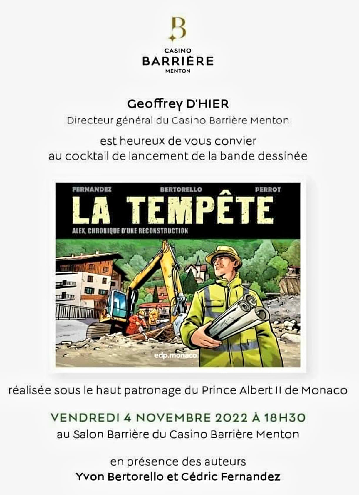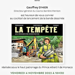 Fréquence Méditerranée, partenaire de l'évènement, Lancement du Tom 2 " Chronique d'une Reconstruction " de la BD " Tempête Alex ", au Casino Barrière de Menton.